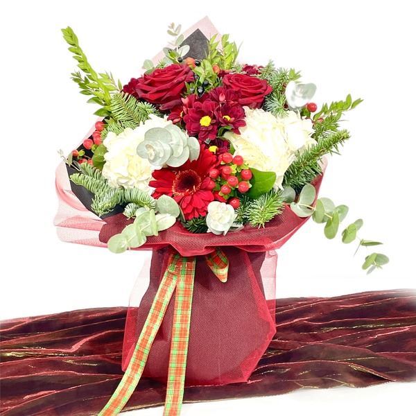 A festive bouquet full of the magic of Christmas, bringing warmth and joy to the holidays.