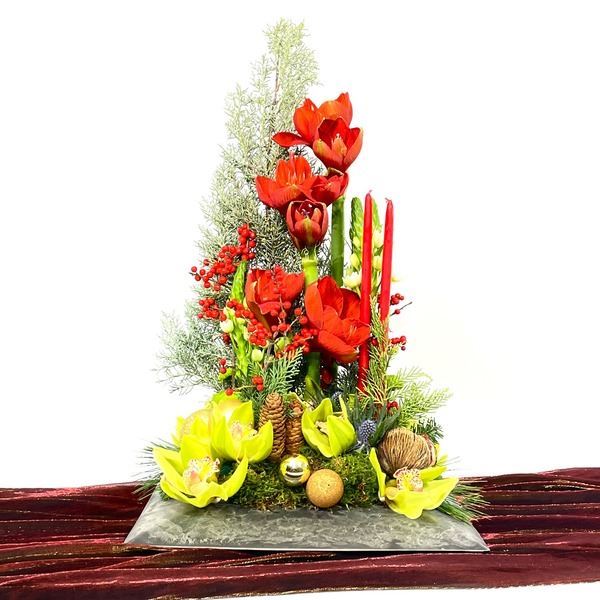 Due to the constraints arising from the season, the availability of materials, and market conditions, we may need to substitute some elements of the arrangement, such as flowers, plants, vases, or pots. Thank you for your understanding.