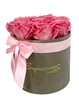 Forever Roses, Grey velvet premium box with pink eternal roses which last 4-5 years without any care from you. Handmade with love by us so you can gift it to your favorite people. Diameter of Box : 18cm Height of Box : 16cm